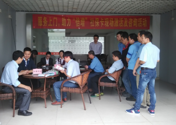 臨近年底,產能的沖刺又成為各部門的首要任務,在繁忙的工作之余,為解決新進員工社保卡激活問題等后顧之憂,經與鎮社保局、廣發銀行溝通,邀請其于2017年11月14日上門為員工進行社保卡激活、咨詢等服務。