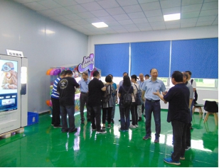 會后徐常董、吳常董及各運營總監一起陪同各來訪領導到生產現場參觀考察;現場了解制造沖壓自動化機械手運用情況,及量測實驗室精密量測設備的使用情況;隨后,又參觀了販賣機、糖果機、咖啡機生產車間,從中整體了解了自動售賣系列產品的運行及后期維護情況,蔡會長及各企領導還現場體驗試用咖啡機及糖果機的效果。