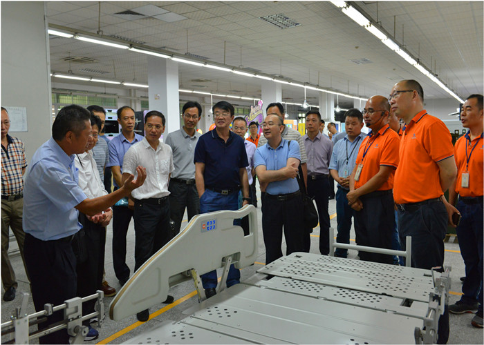 (?東莞嘉豐董事長向領(lǐng)導(dǎo)們介紹醫(yī)療設(shè)備)